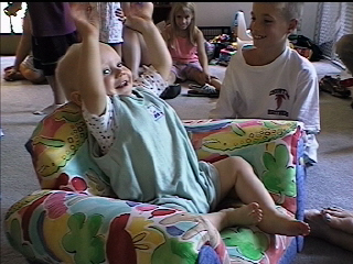 touchdown in his new chair...